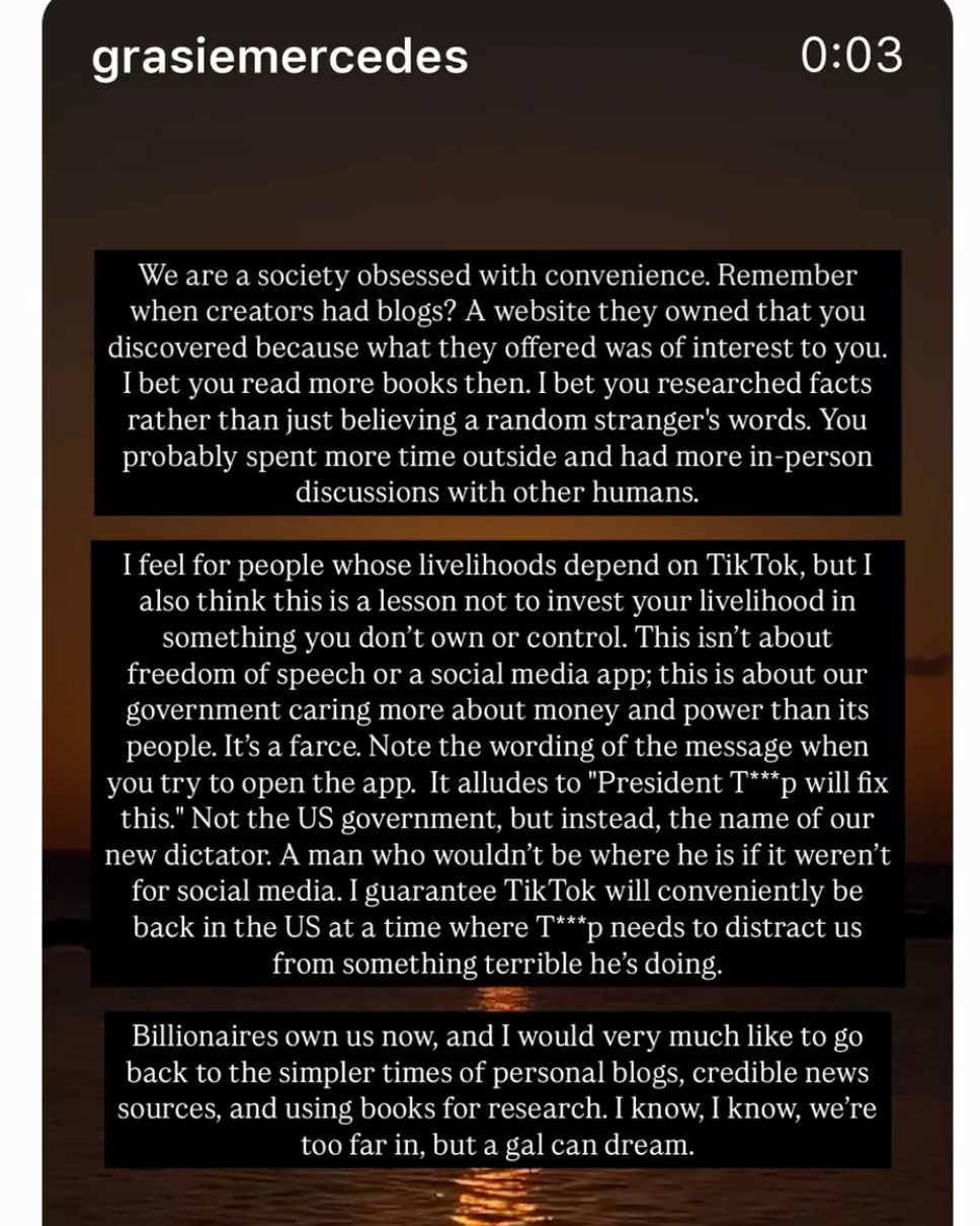 It’s wild to be alive for the beginning and the end of something as big as social media. I know we’re not at the end, but it sure does feel like the beginning of the end.