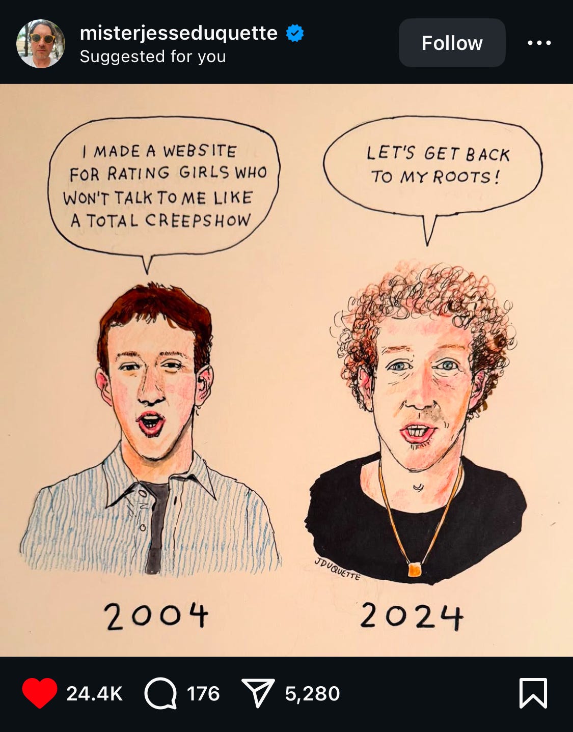 Mark Zuckerberg’s “descent into neo-Nazi madness” is not aligned with my values, so it’s time to quit Meta.